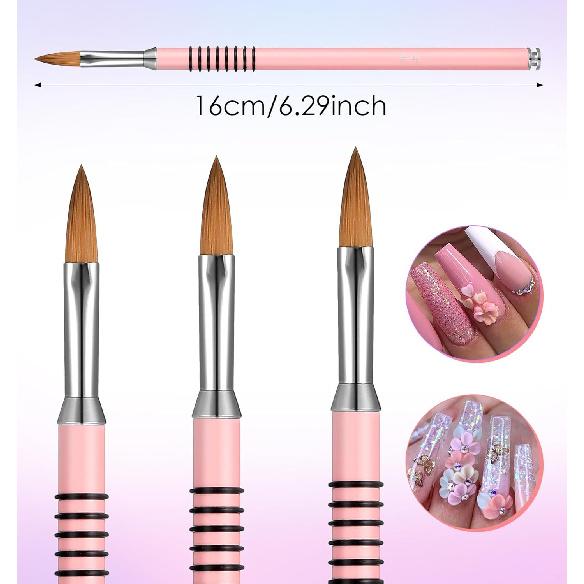 Kolinsky Bristles: The nail brushes for acrylic application features Kolinsky bristles, soft and flexible to hold acrylic well, ideal for precise 3D designs and sculpting