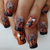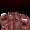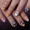 24Pcs Halloween Black Glitter French Press On Toenails White Ghost Fake Toe Nails Short Square Glossy Cute Ghost Full Cover Acrylic Stick On Toenails