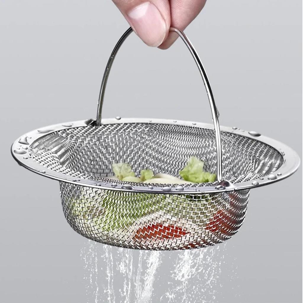 Kitchen Sink Strainer, Stainless Steel Mesh Drain Basket with Handle, Rust Proof Filter for Bathroom