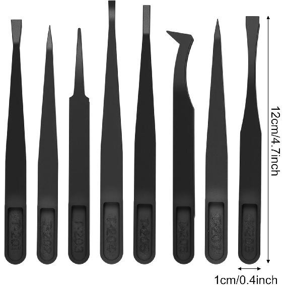 8 PCS Precision Plastic Tweezers, 4.7 Inch Length Precision Anti-Static Tweezers with Curved and Straight Tips for Electronics Assembly,