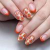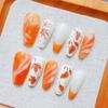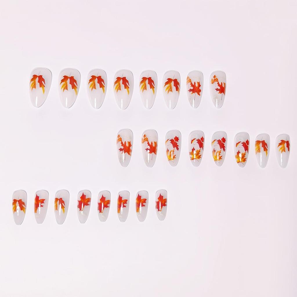 24Pcs Fall Press On Nails Medium Almond Fake Nails Glossy Glitter Maple Leaf False Nails Full Cover Thanksgiving Glue On Nails Reusable Acrylic