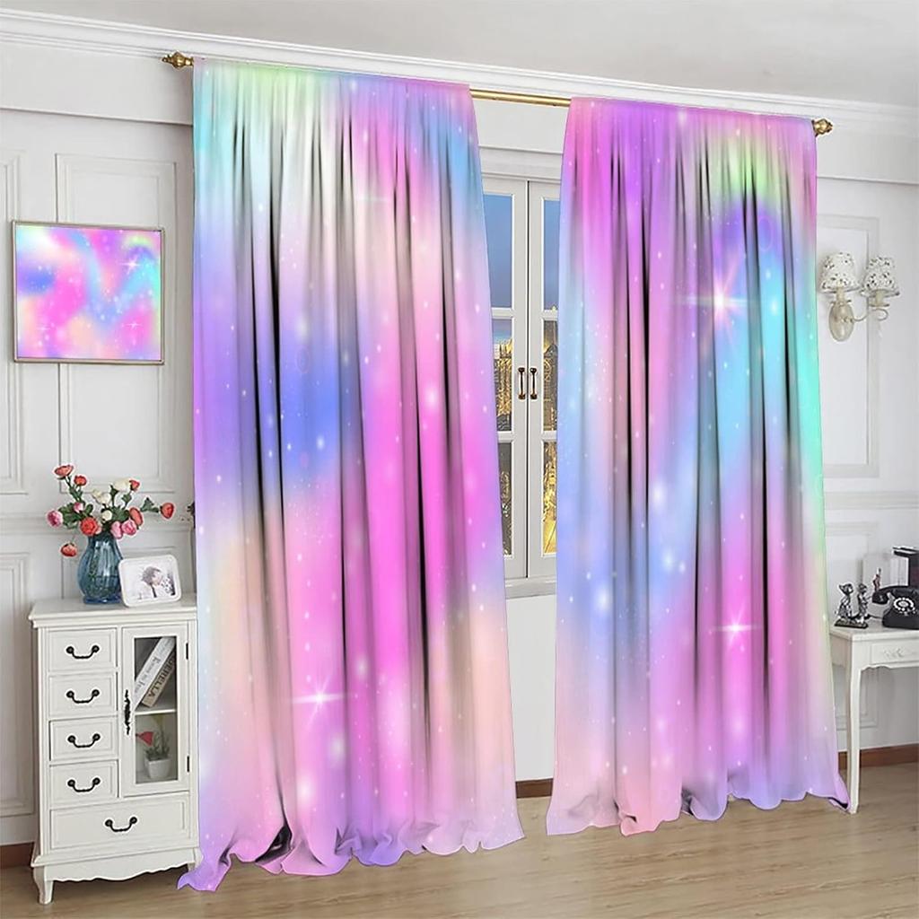 Rainbow Curtain Colorful Tie Dye Pastel Curtains Room Decor for Children Girls Room Living Room Bedroom Blackout Rod Pocket Printed Window Drapes 2