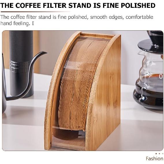 DECHOUS Coffee Filter Holder, Coffee Paper Storage Container for #1#2 V 60 Coffee Filters Bamboo Coffee Filter Paper Dispenser Rack with Dustproof