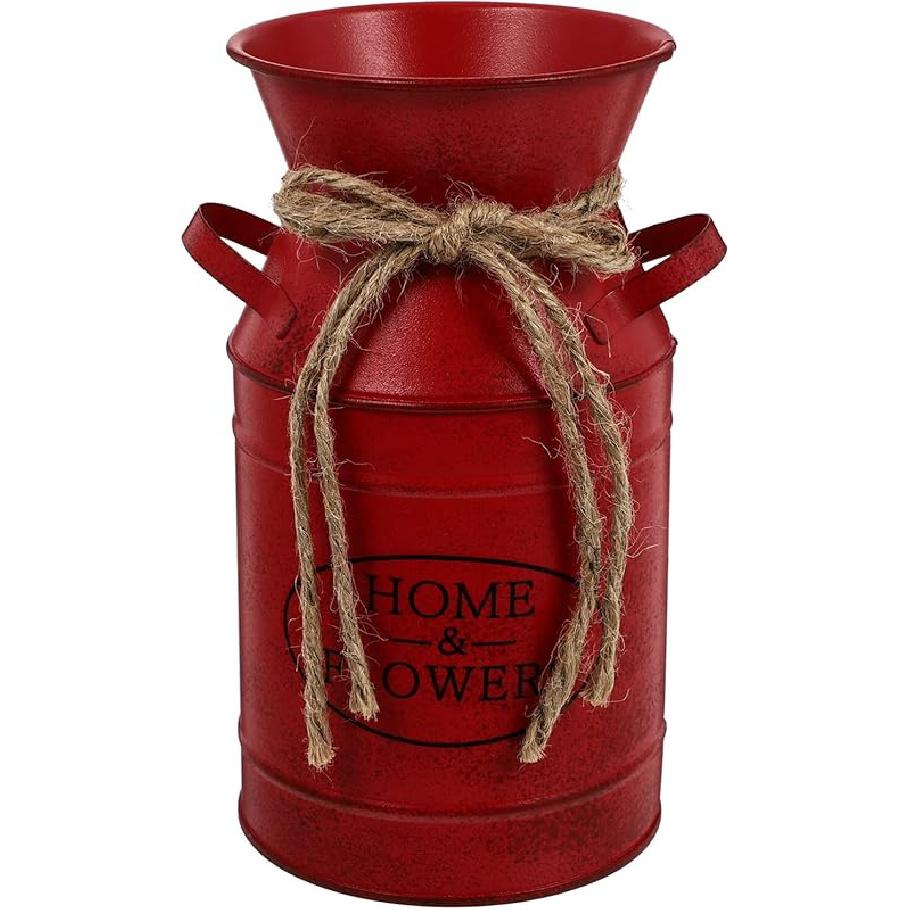 Rustic Milk Can Decor Shabby Chic Vase Farmhouse Vase Decorative Metal Jug Pitcher Vase for Wedding Home Living Room Bathroom Dining Table Desk