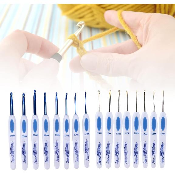 Ergonomic Crochet Hooks Set: The biggest advantage of this crochet hooks ergonomic is its elastomeric comfort grip. which is very durability and easy to hold. You can hold it either or pen grip, and crochet for hours and not have any wrist pain or discomfort. The thick plastic handle reduces arthritis and cramps in the hands, wrists and fingers.