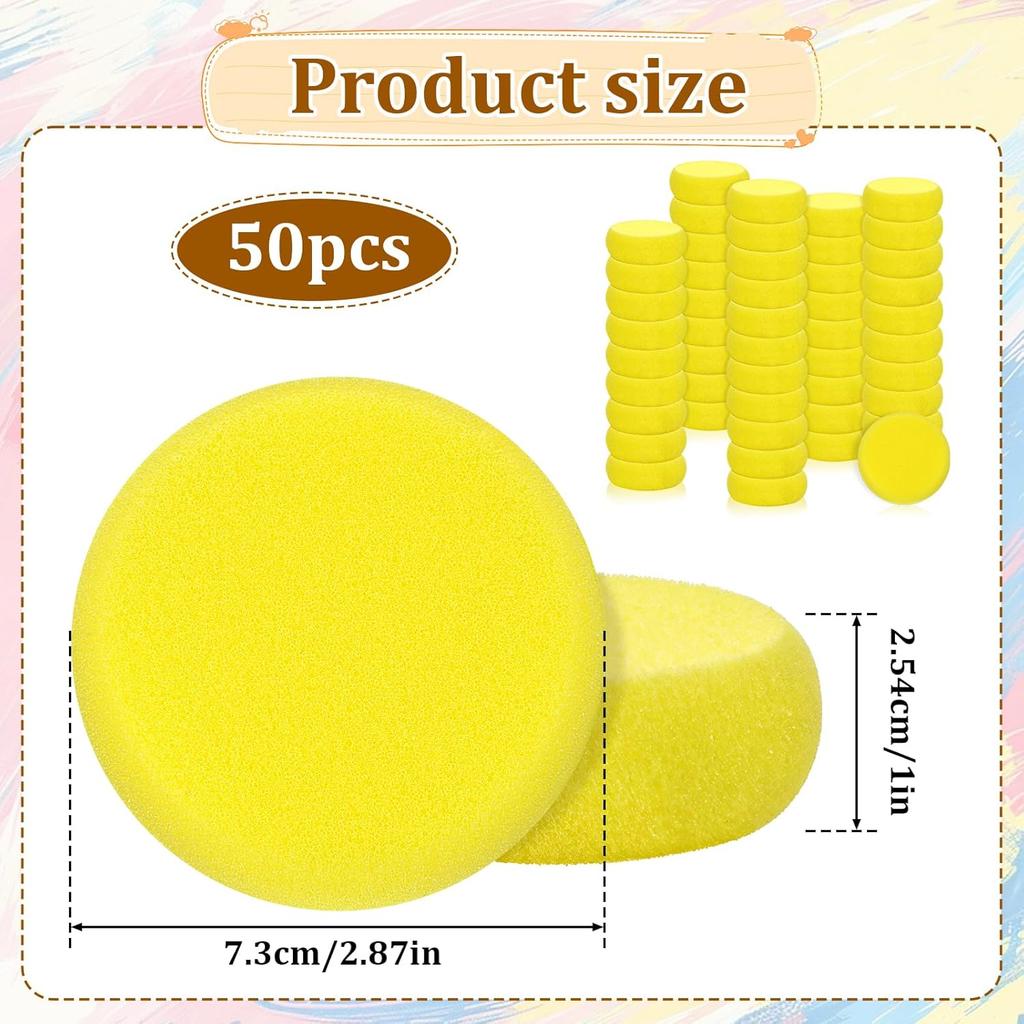 50 Pack Painting Sponge Pottery Sponges 2.9 Inch Round Sponge Clay Sponges for Pottery Yellow Artist Sponges for Face Painting Pottery Ceramics Art