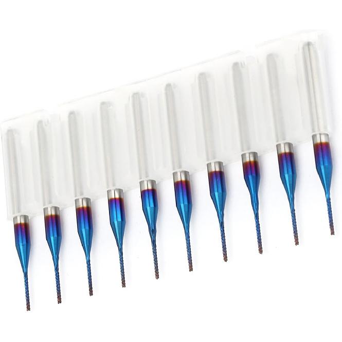 10pcs Tungsten Nose End Mill Blue Coated Spiral Router Bits Milling Machine Cutter Drill Bit CNC Rotary Burrs Set Tool(0.8mm)