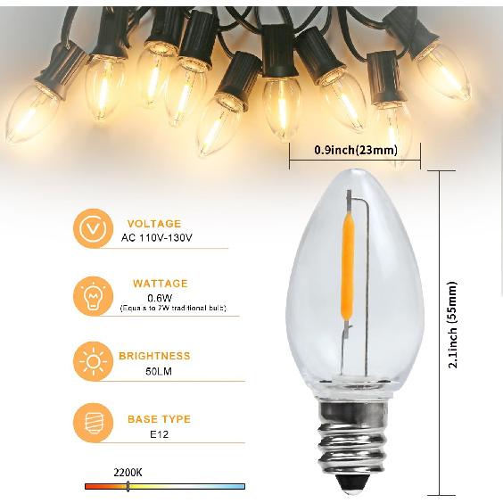 Wide Application: C7 led replacement bulbs would be appropriate decoration lights for your garden, backyard and balcony terrace, they are also an excellent decorative lighting for indoor and outdoor Patio.