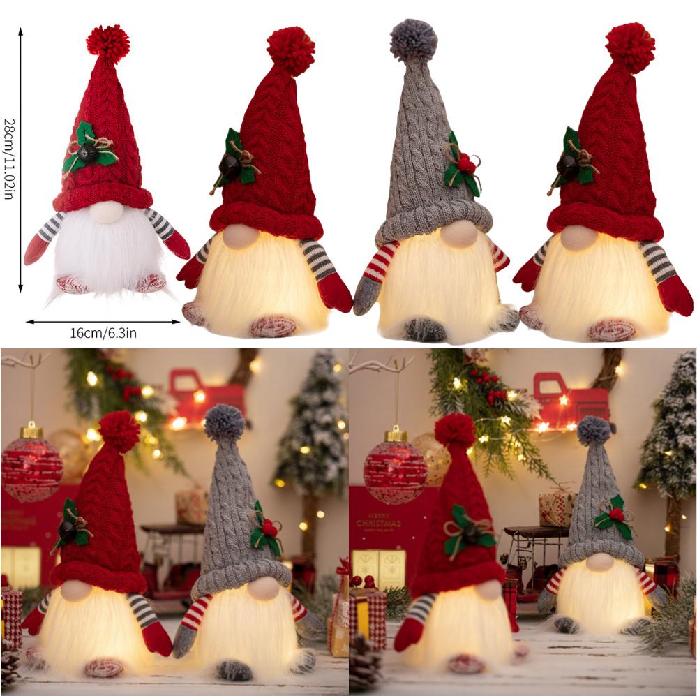 5-1PCS Christmas Plush Gnome W/Light Tomte Plush Doll Tabletop Santa Figurine Christmas Decoration for Home Kitchen Tiered Tray