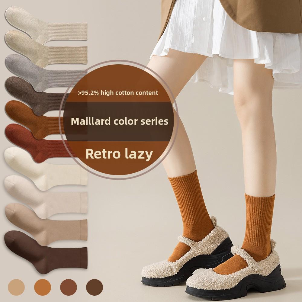 Women's Mid-calf Autumn Socks, Pure Cotton, Retro Brown, Versatile Warm Colors for Autumn and Winter