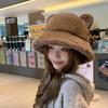 Cute Plush Ears Bucket Hat Women Winter Warm Faux Fur Basin Hat Fashion Casual Outdoor Fisherman Cap