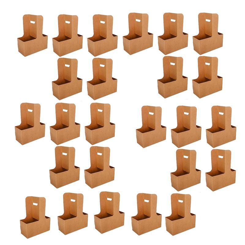 Good-Kraft Flower Gift Bags 25Pcs Drink Carrier With Handle To 2 Cup Rectangle Floral Wrap Packing Box Kraft Flower Holder