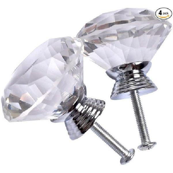 4 Pack 40 Mm Diamond Shaped Glass Crystal Knobs with 3 Size Screws for Cabine