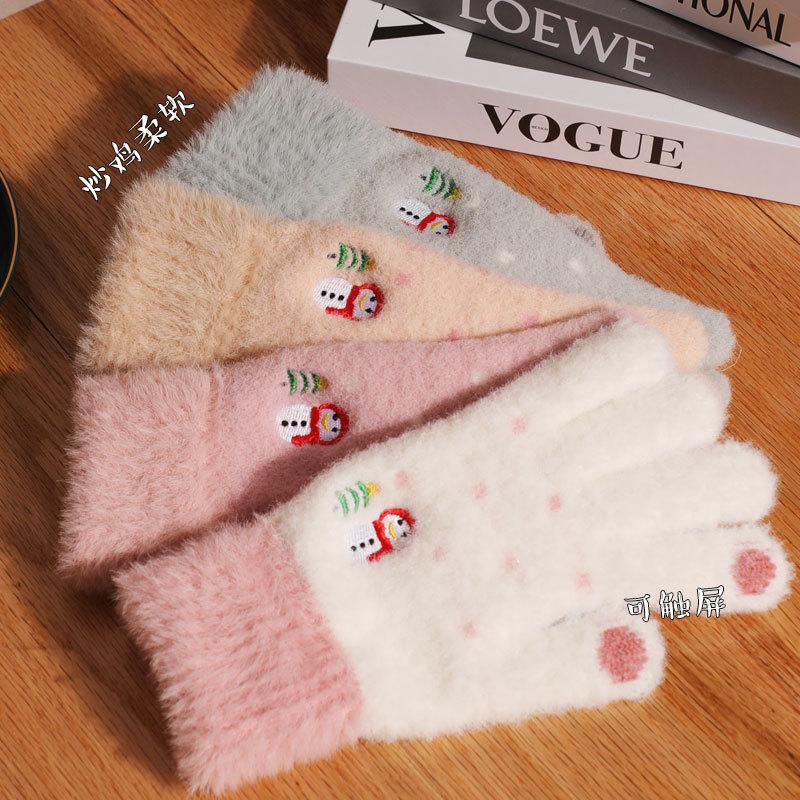 Winter Female Ins Cute Velvet Cold-proof Soft Girl Cycling Five-finger Cycling Season