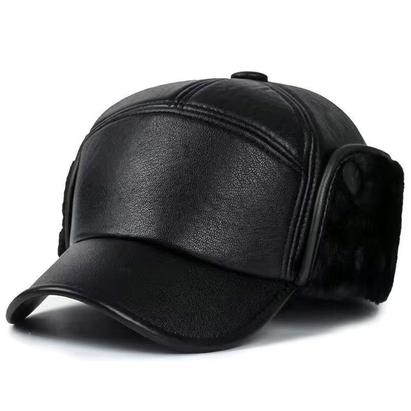 In the Elderly Hat Men Winter Warm Dad Old Man Leather Hat Fleece Thickened Windproof Old Man Ear Protection Cap