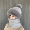 Winter New Fox Plush Thermal Hat Children's Scarf Integrated Cold-proof Cute Outdoor Thickened Warm Two-piece Set
