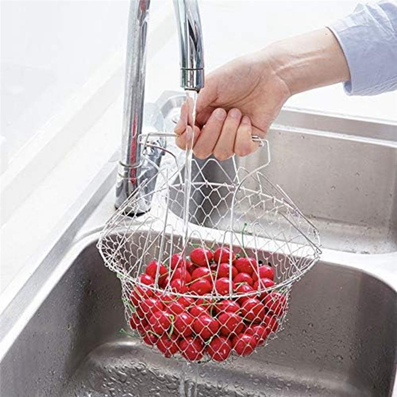 ABWR-Household Folding Draining Basket Kitchen Multi-Function Poaching Boiling Deep Frying Basket
