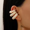Minimalist Ribbed Striped Non-Piercing Sterling Silver Pearl White Ear Cuffs for Women