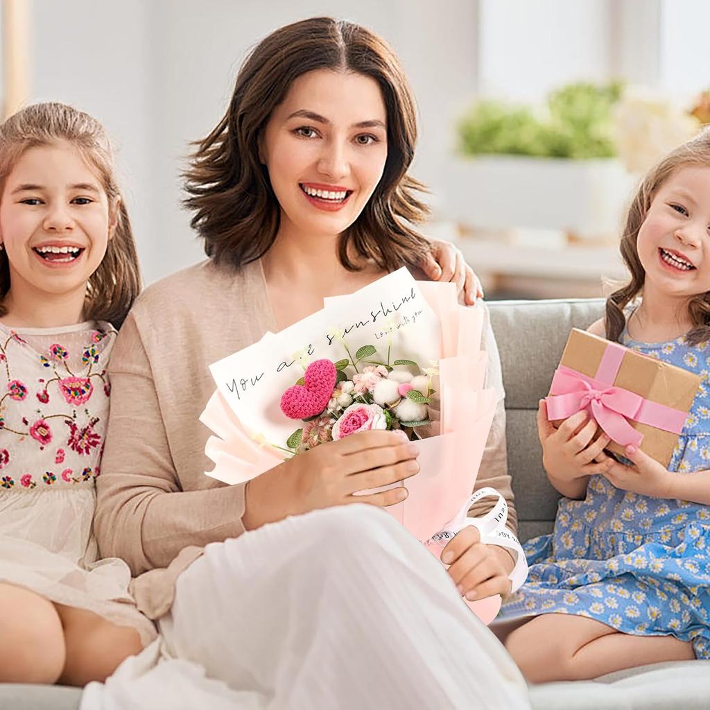 Crochet Rose Flower Bouquet - Handmade Rose Artificial Flowers for Holiday Wedding Graduation Anniversary Birthday Home Decoration (Pink)