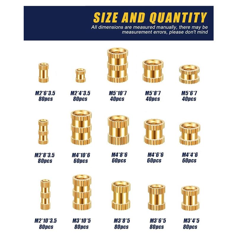 A96I-1000Pcs Threaded Inserts Brass Knurled Nuts Heat Set Insert Tool For Plastic Parts 3D Printing Injection Molding Press
