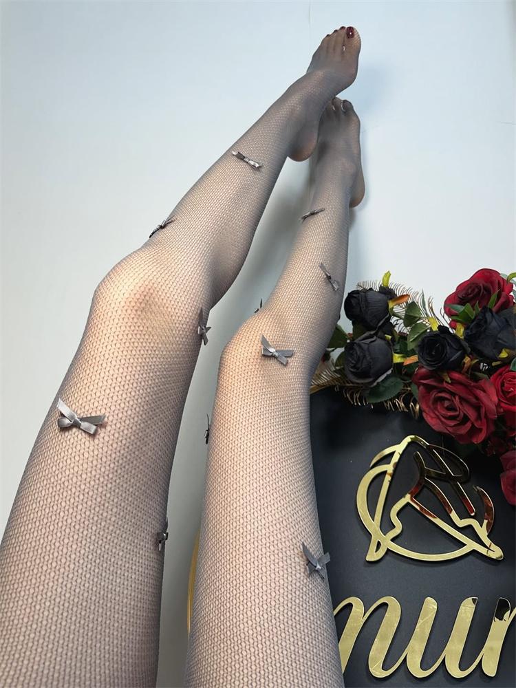 Bowknot Hollow Out Pantyhose Women Sexy Thin Ins Tide Lace Tights Fishnet Silk Stockings For Party Christmas