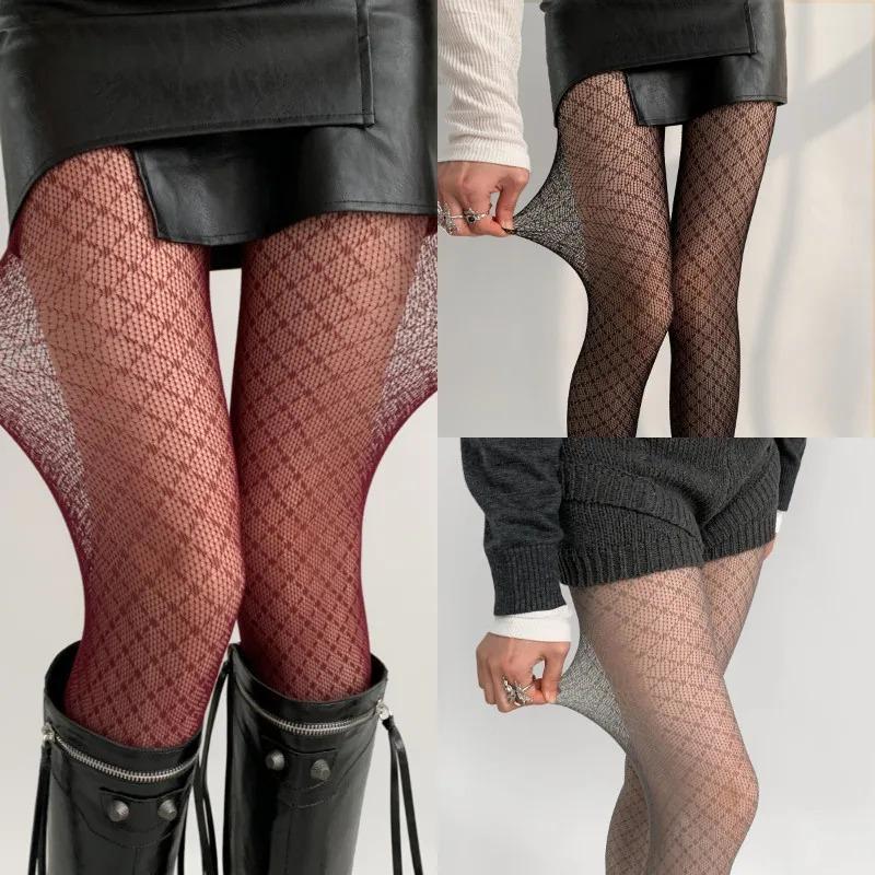 Korean Ladies Rhombus Plaid Pantyhose Retro Women Sexy Hottie Nylon Mesh Tights Gothic Lolita Fishnet Body Stockings Ins Style