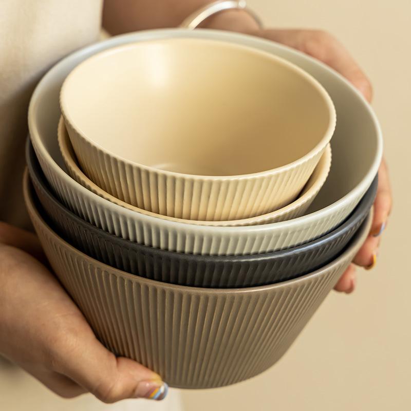 Simple Solid Color Of Chinese Retro Vertical Rice Bowl Small Bowl Round Breakfast Porridge Soup Bowl Household Tableware