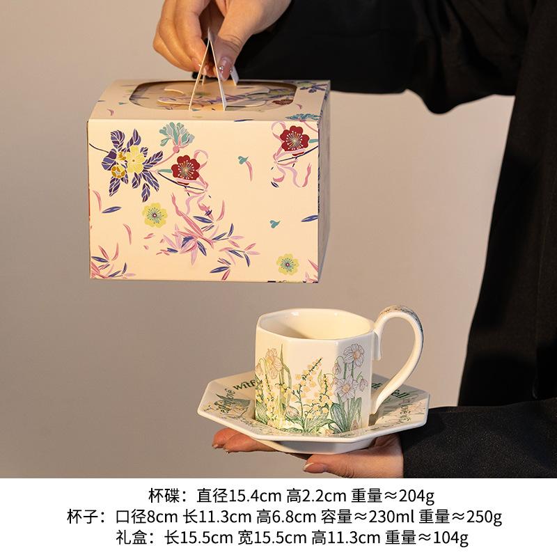 Retro American Coffee Set Internet Celebrity Cup Ceramic Women'S High Value Cup Gift Box Cup Saucer Afternoon Tea Coffee Cup