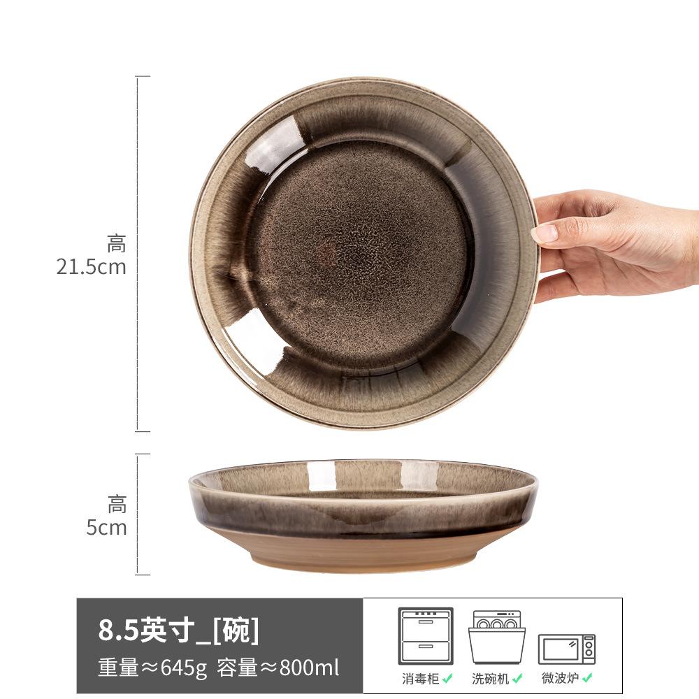 Kiln Ceramic Bowl Retro Style Tableware Shallow Bowl Salad Bowl Household Dish Bowl Large Bowl Japanese Noodle Bowl Thick Bottom Bowl