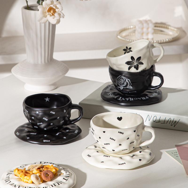 European Ceramic Coffee Cup And Saucer Set, Medieval Hand-Squeezed Ceramic Cup, Restaurant Home Afternoon Tea Cup, Breakfast Cup, Water Cup