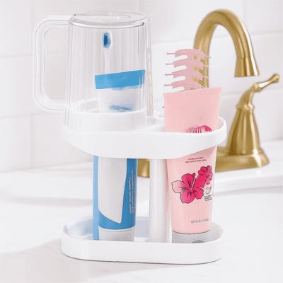 Countertop Toothbrush Holder with Bathroom Organizer Rack - Space-Saving Easy To Clean Washroom Storage for Toothpaste & Cups