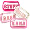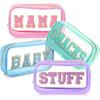 The beautifully sewn chenille letter patches, made of towel embroidery and non woven fabric, add a touch of personality to your makeup kit