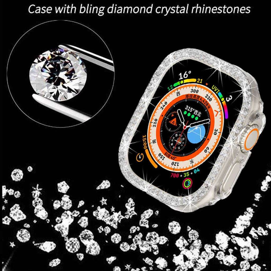 Compatible with Apple Watch Ultra 3/2/1 49mm Double Row Bling Diamond Case PC Bumper Protective Cases Women Men Crystal Shining Rhinestone Cases