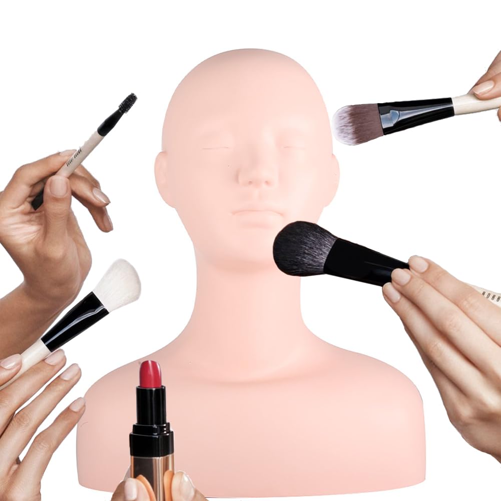 Multi Function Makeup Practice Model, Esthetics Soft Mannequin Head with Shoulders Massage Wig Hat Display Silicone PVC Skin Texture Facial