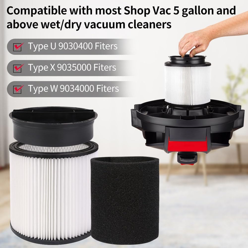 90304 Replacement HEPA Cartridge Filters with Lid, Compatible with Shop-Vac Shop Vac 90304, 90350, 90333, 903-04-00, 9030400, 90585 5 Gallon and