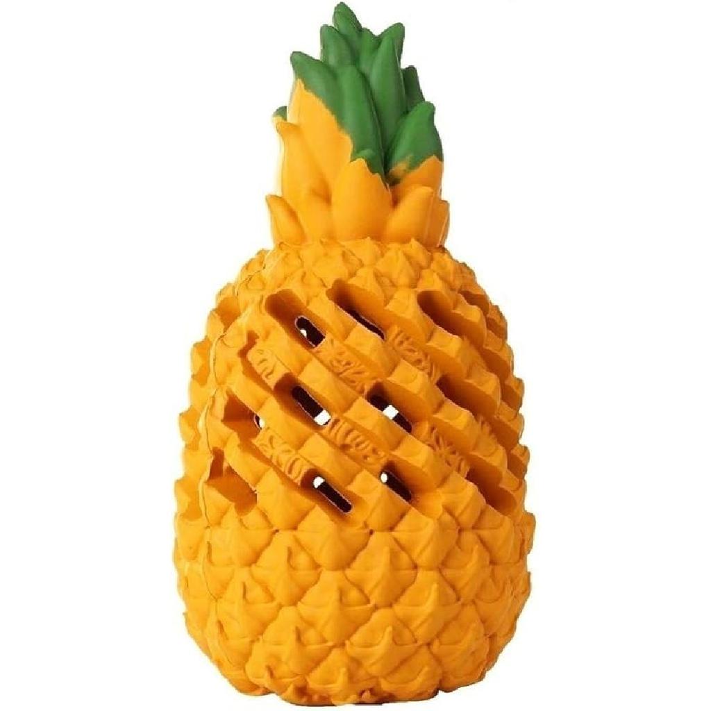 SAFE UNIQUE HOLLOW PINEAPPLE SHAPE&FLAVOR DESIGN: made from nature rubber non-toxic with seductive pineapple flavored, appeal dog to chew and play, toy's raised textured well clean your dog's teeth,stimulate gums and reduce tartar