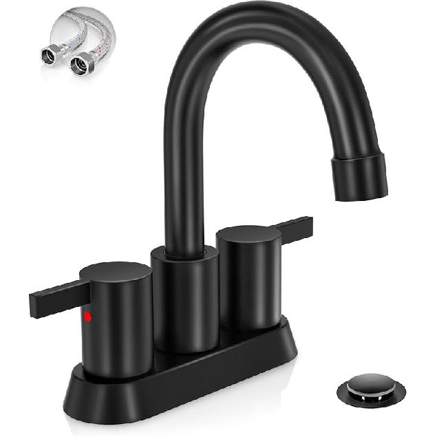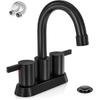 Phiestina 4 Inch 2 Handle Centerset Matte Black Lead-Free Modern Bathroom Faucet, 360 Swivel Spout 2-3 Hole RV Bathroom Vanity Sink Faucet with Pop