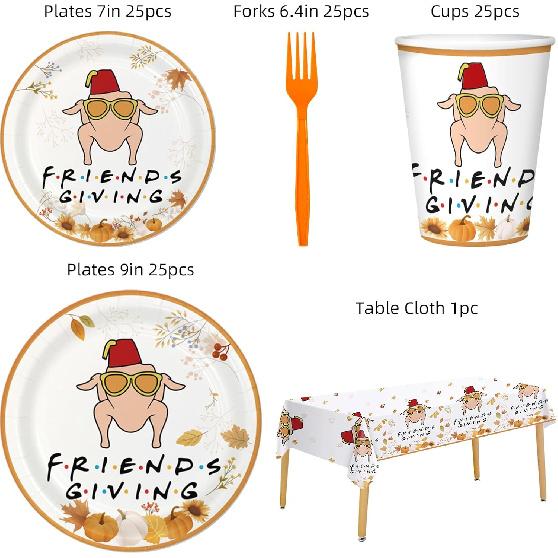 Friendsgiving Decorations Set Serves 25, Friendsgiving Party Decorations Plates and Cups, Thanksgiving Party Decorations, Thanksgiving Decorations