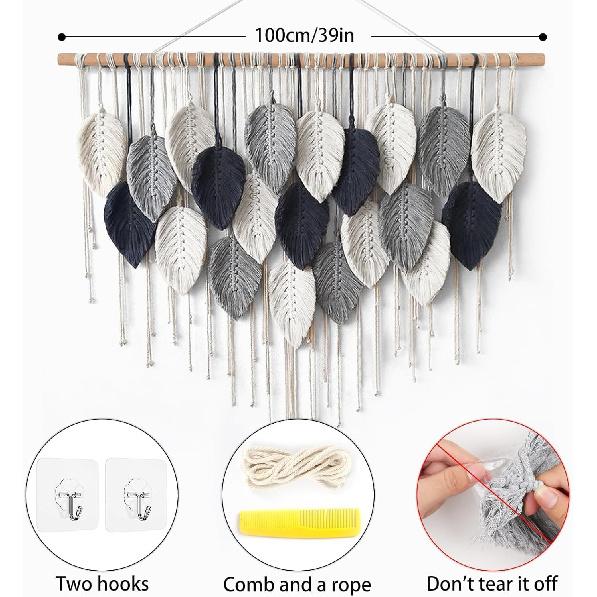 Warm Tips: Please do not tear off the scotch tape on the leaves, otherwise the tapestry will not be shaped. It is recommended to lightly steam this beautiful macrame design. There may be little color difference due to display pixel and light. The dark leaves is dark blue but not black!