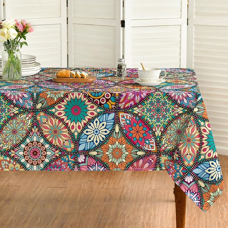 Horaldaily Boho Bohemia Style Rectangular Tablecloth 60x84 Inch, Vintage Washable Seasonal Table Cover for Party Picnic Dinner Decor