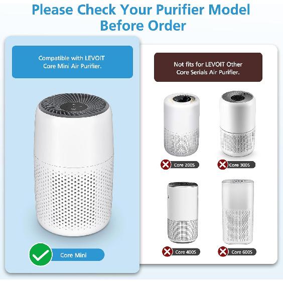 【𝐍𝐎𝐓 𝐂𝐎𝐌𝐏𝐀𝐓𝐈𝐁𝐋𝐄 𝐖𝐈𝐓𝐇】Our core mini-p filter DOES NOT compatible with LEVOIT Core 200S/ Core 300/ Core 400S/ Core 600S air purifier, if you are not sure of your model, please contact with us for confirm before order