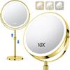 Height adjustable makeup mirror, height from 14.9-18.9in adjustable, you can find the comfortable height you need, conforms to any height of the makeup table, it is an ideal choice for family, travel, and hotel use. 360° rotation design, switching between 1x and 10x Magnifying mirrors, allowing you to easily find the desired angle