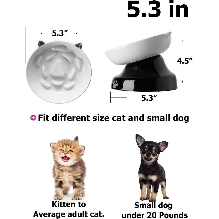 Stable and High-Quality Ceramics: 1-pound weight of the cat bowl provides stability, preventing the bowl from sliding or tipping over during eating. Compared with plastic cat bowls or silicone cat bowls, it is less likely to be chewed and broken, and you don't need to worry about your pet suffocating from swallowing the purchased pieces.