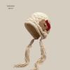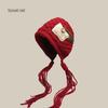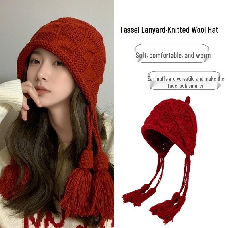 Women's Handmade Red Wool Tassel Hat - Warm Ear Protection for Autumn & Winter, Korean Fashion
