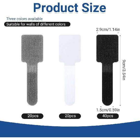 80 PCS Adhesive Hook and Loop Cord Ties, Adjustable Appliance Cord Organizer Multi-Purpose Cords Ties for Charging Cables Household Office Kitchen