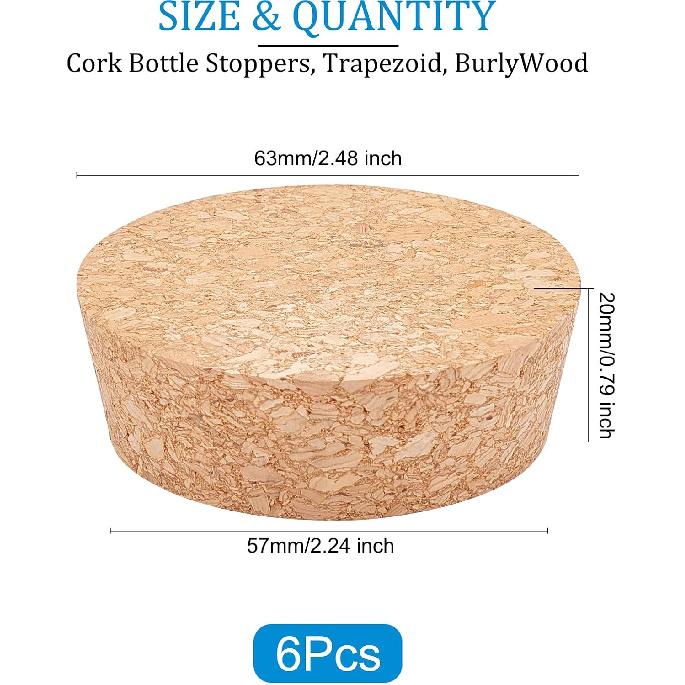 BENECREAT 6Pcs Cork Bottle Stoppers, Tapered BurlyWood Wooden Wine Bottle Cork Stoppers for Wine Beer Bottle Crafts, 2.2inch In Diameter