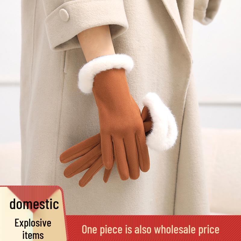 Women's Winter 2025 Touchscreen Cycling Gloves - Windproof, Cold-Proof, Split-Finger Design with Fur Trim.