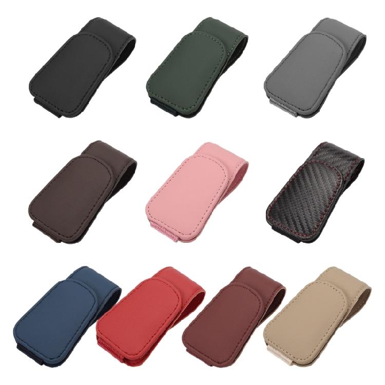 Car Sun Visor Glasses Mount Ticket Card Holder Magnetic Leather Hanger Clip