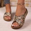Summer New Platform Fish Mouth Cutout Slipper Wedge Large Size Casual Leopard Print Slipper Women