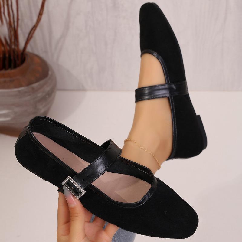 Women's Retro Suede Elegant Square Toe Pumps Flat Heel Single Shoes Women's Fall One Line Strap Low Heel Mary Jane Shoes